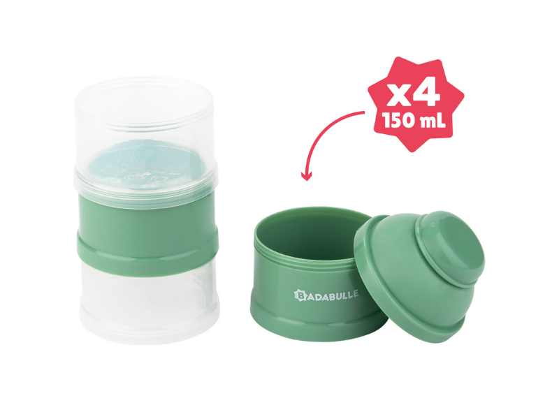Προμετρήστε τη φόρμουλα σε σκόνη του μωρού σε 4 στοιβαζόμενα και εναλλάξιμα διαμερίσματα με εύκολο βιδωτό καπάκι. Ιδανικό για γρήγορη και εύκολη προετοιμασία του μπιμπερό κατά τη διάρκεια της ημέρας και της νύχτας.